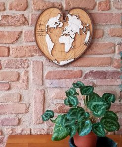 Superbe carte du monde en bois en forme de coeur. Cette mappemonde est un cadeau idéal pour tous les amoureux de voyages… et pour tous les amoureux tout court !